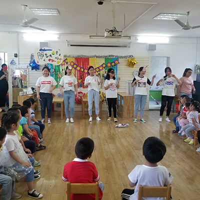 17学前2班的同学们首先给小朋友们表演了《没有牙齿的大老虎》,表演过程过程中同学们还与小朋友们进行了精彩的互动,希望小朋友们少吃糖,勤刷牙。