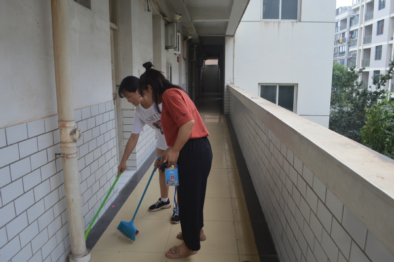 此次活动由学生会安全部向各班班长发出倡议,各班同学自主报名,参加活动的同学于7月4日下午2点在校宿管中心门口集合,本次活动主要面向的是女生宿舍一、二、三栋部分毕业生寝室。炎炎夏日丝毫没有阻挡同学们的热情,带好提前准备的打扫工具,各自奔赴负责寝室。她们每到一个宿舍都会礼貌地询问是否需要帮助打扫宿舍,得到同意后方才进入开始工作。她们分工明确,有的人扫地,有的人拖地,有的人负责擦玻璃、擦桌子,有的同学还会贴心地帮助学姐们清理走廊过道上的垃圾。打扫卫生期间,同学们会和学姐们进行亲切的交流,学姐们也开心地向她们聊起过往大学生活中的趣事,给她们提出一些学习和生活上有用的建议,言语间流露出对学校浓浓的依恋与不舍。在学弟学妹们的帮助下,毕业班宿舍的卫生环境得到了改善,也给即将离开校园的学姐们留下了美好的回忆。
