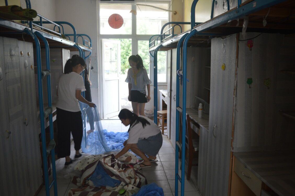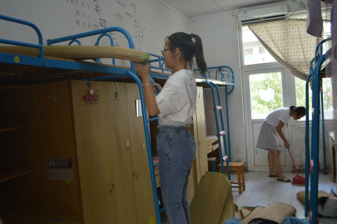 9月5日中午,记者走到女生三号公寓楼下,发现2017级小学教育部分班级正拿着清理工具,准备开始打扫工作。据悉,该系部老生辅导员们在接到新生宿舍安排后,即刻着手筹划,按专业对接安排负责班级,再由负责所班级的班委安排班级同学到指定宿舍进行卫生打扫。活动中,同学们拿着扫把、抹布,分工明确,各司其职,认真地清理着。即使高处玻璃的污垢,也用抹布擦洗干净。遇到宿舍内学长学姐留下的不用的破旧物品,同学们“专业”地把垃圾归纳整理,等离开的时候带到宿舍楼下的垃圾桶里。面对一间间布满灰尘的宿舍,负责打扫的同学们没有丝毫抱怨和懈怠,地面、桌面、抽屉、鞋柜、墙角各个角落都不放过。“当初我们刚进入学校的时候,住进的宿舍也是很整洁,所以,我希望学弟学妹们也能有一个良好的生活环境。”正在擦玻璃的一位同学这样说道。