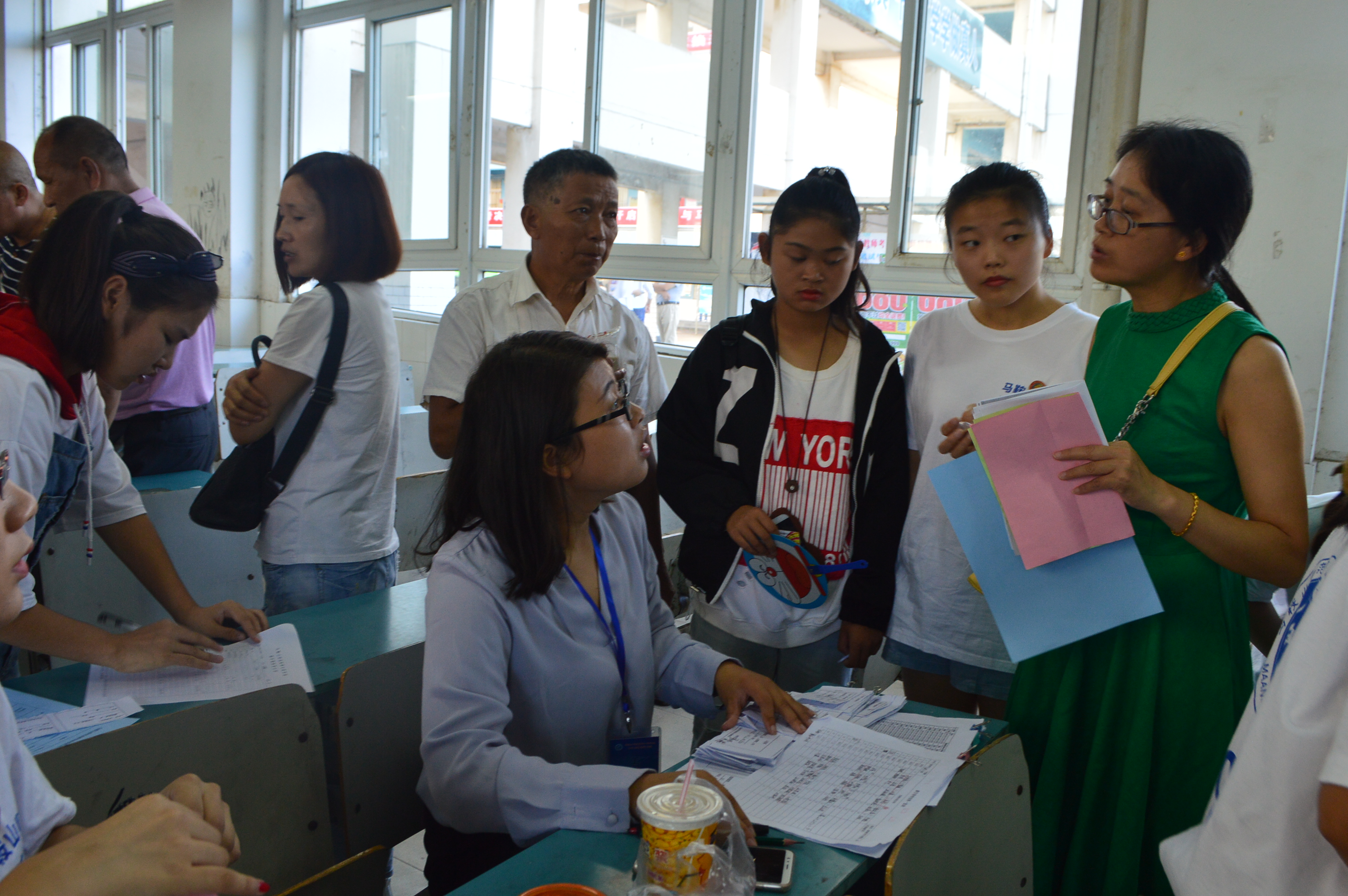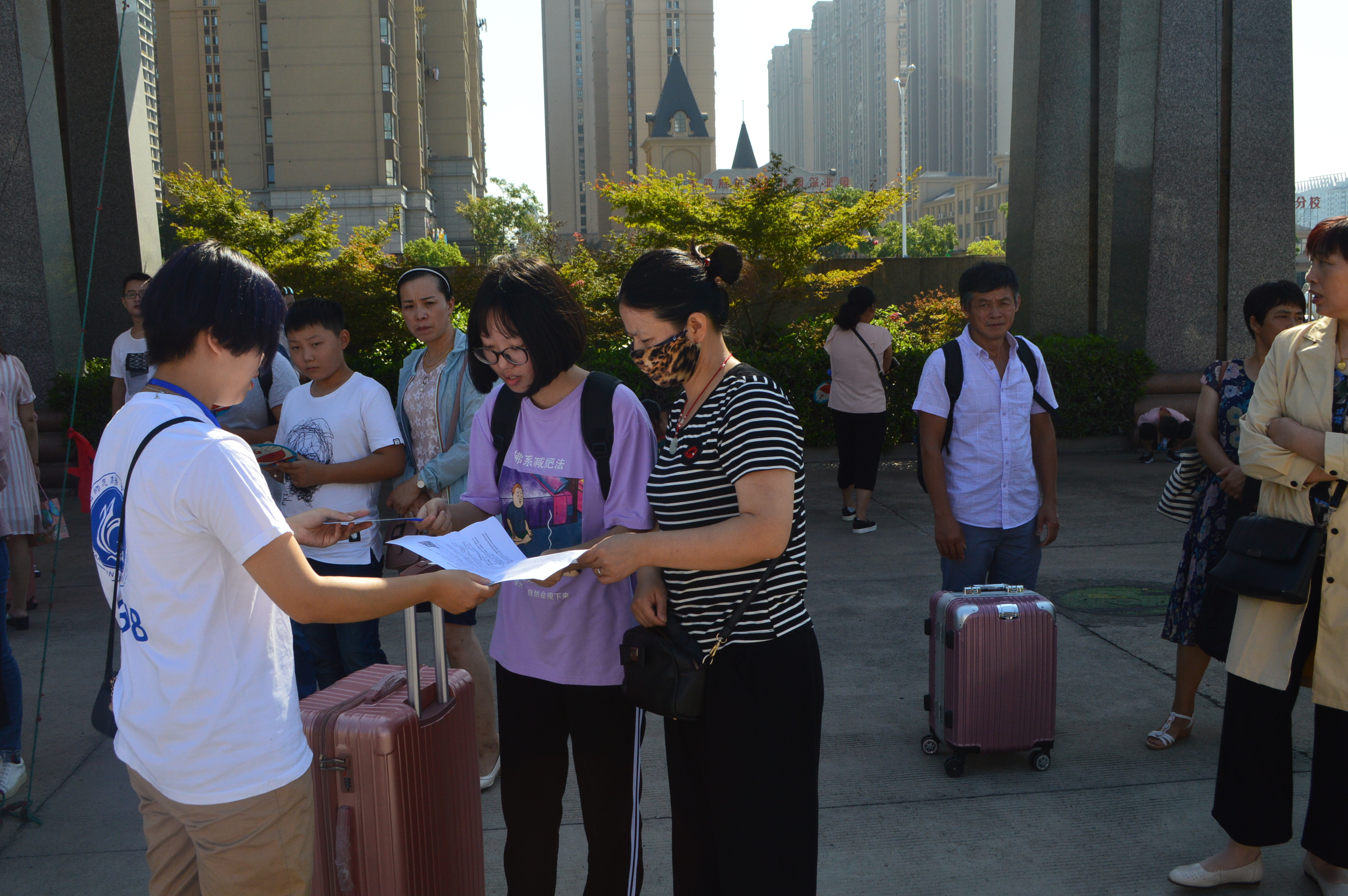 “孩子第一次出远门,让他自己来学校报道我不放心,跟着过来,起码能帮点忙。”不辞辛劳的家长仔细地向志愿者同学询问着报道流程和相关情况。