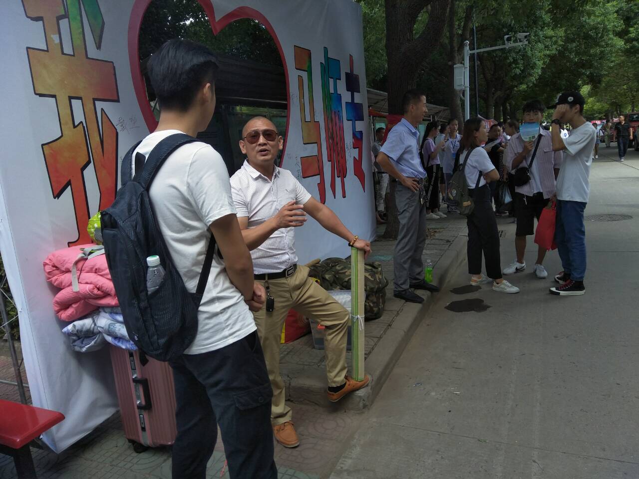 “我爱马师专”,走进校门第一站,暖暖的、回家的感觉。“孩子,你去报道吧,我在这里看着行李,休息会。”