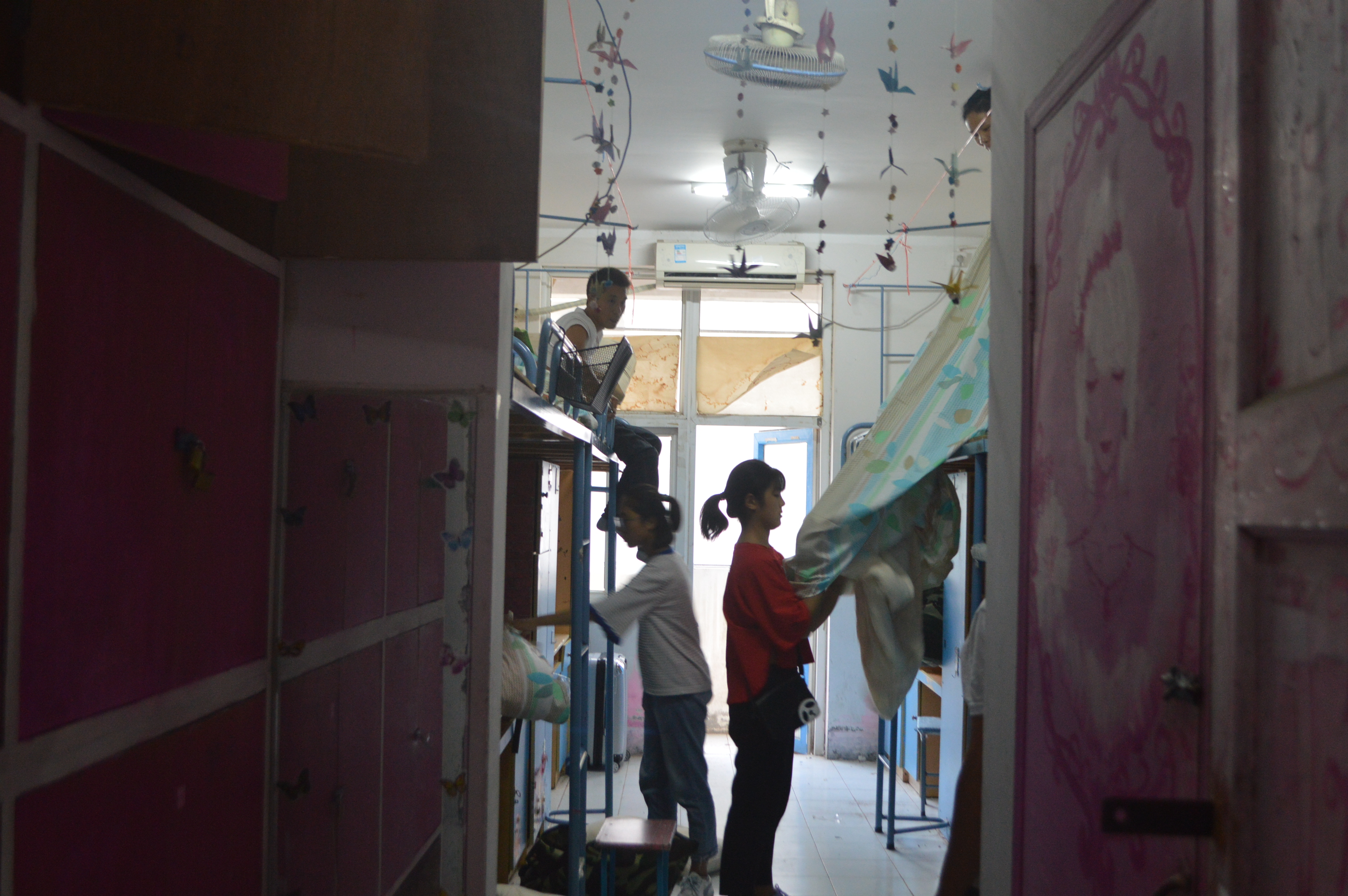 报道流程最后一站,不少家长选择帮孩子整理好床铺,方才依依不舍地万千叮嘱:“在大学里,一定要好好学习,把自己照顾好,希望你能够承受风雨的打击,学会独立。”