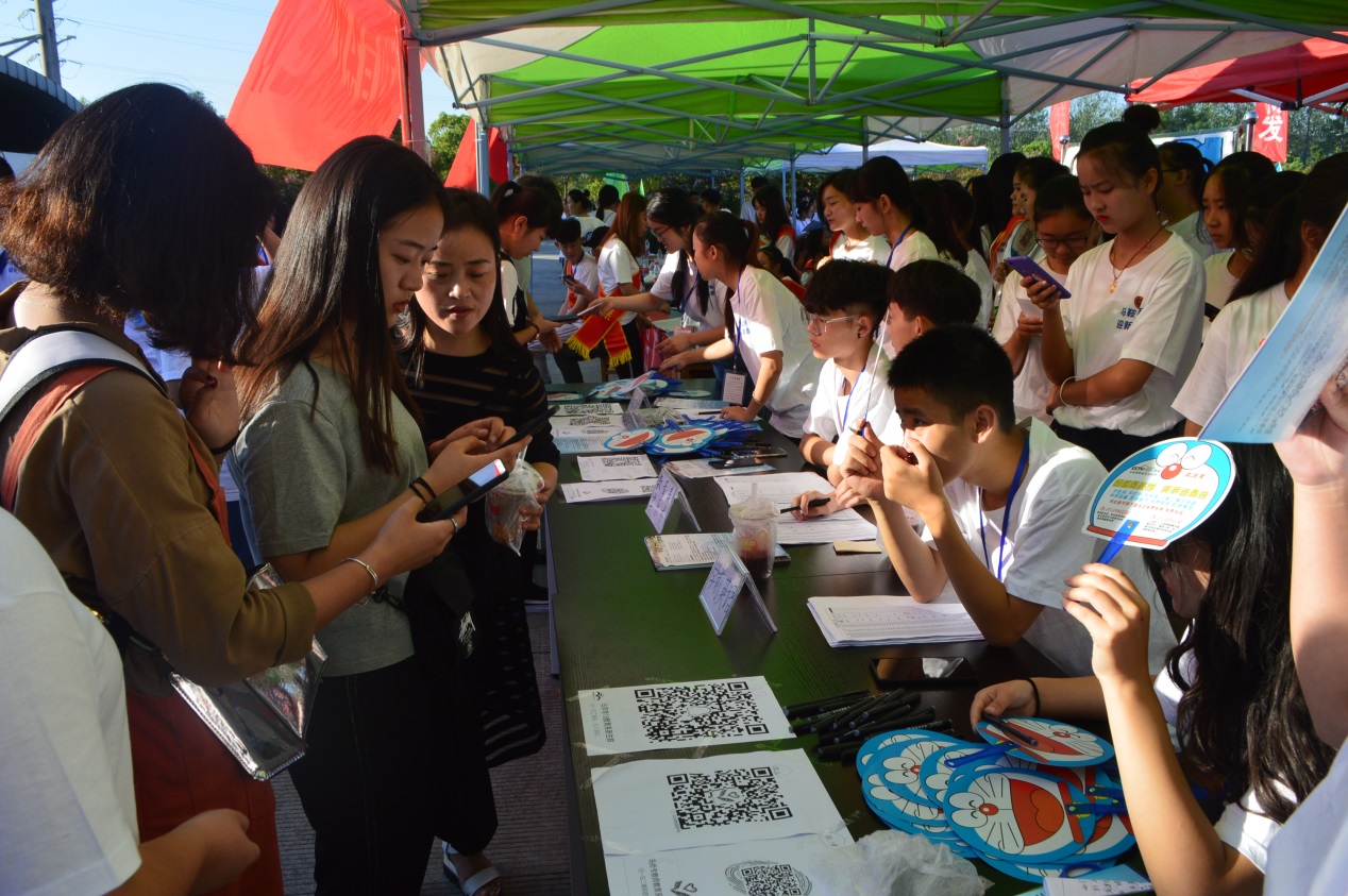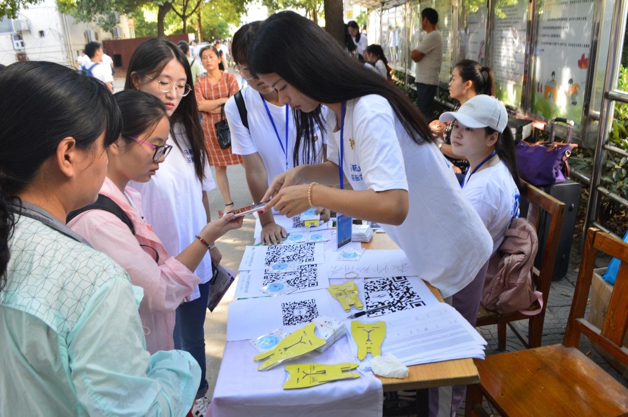 “同学你好,请问是哪个专业?扫码进入新生群,了解更多资讯。”当新生走近迎新服务点时,站点的志愿者们热情接待,询问登记,并为其分配引导志愿者,进入接下来的报到流程。