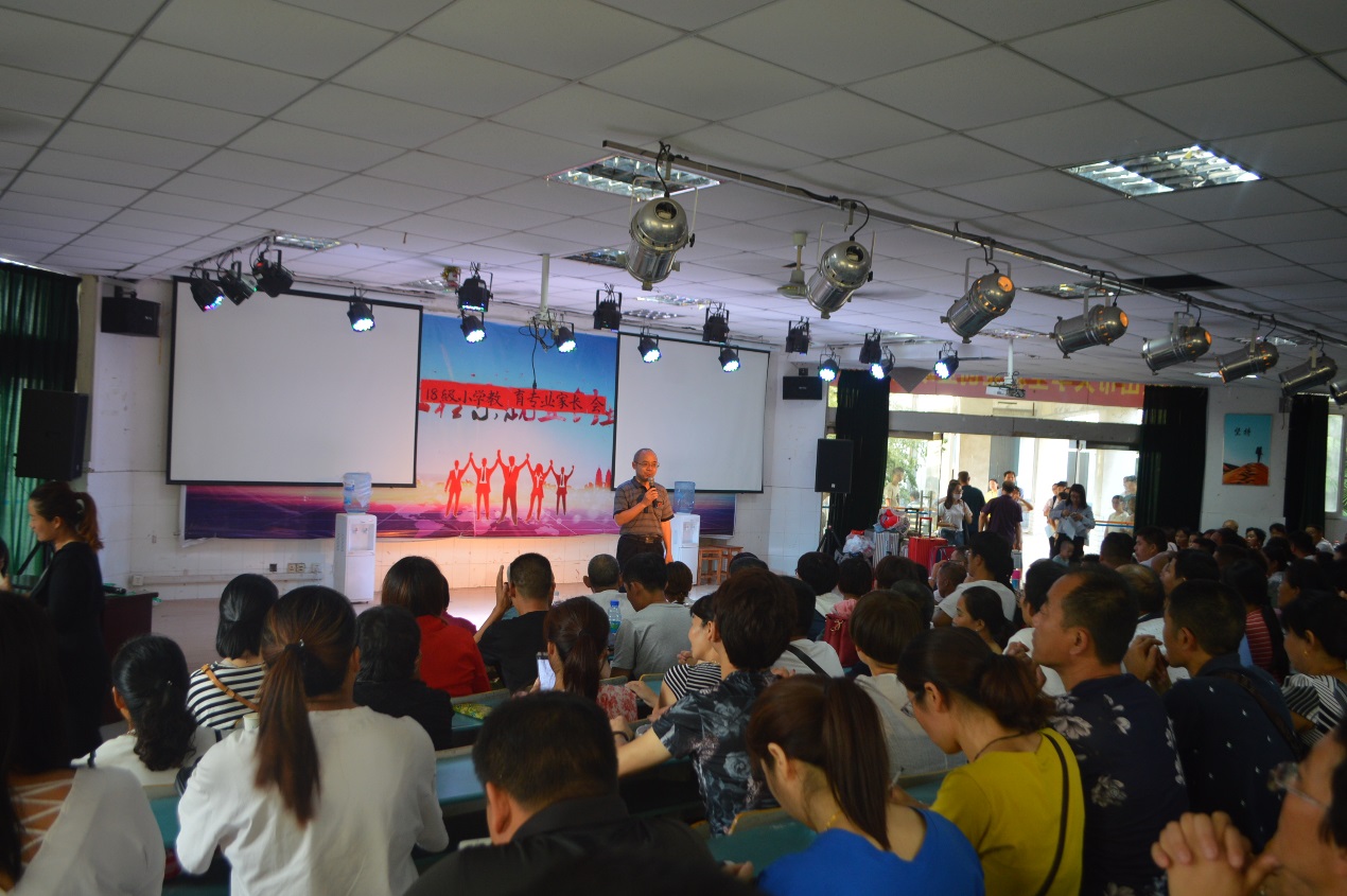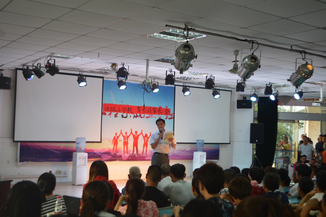 金秋时节,教师教育系迎来了2018级小学教育专业的新生,为让新生家长更好地了解学校人才培养目标和专业概况,进一步明白相关的学校管理制度,配合学校并积极的参与到对学生的教育工作中来,教师教育系(基础部)于9月8日下午四点在大阶梯教室(一)召开了2018级小学教育专业家长会,该系部主任秦东方、党总支副书记吴德琴、副主任陈小凤以及辅导员杨永钢、冯金燕、陈龙妹参加了此次会议,会议由陈小凤主持。