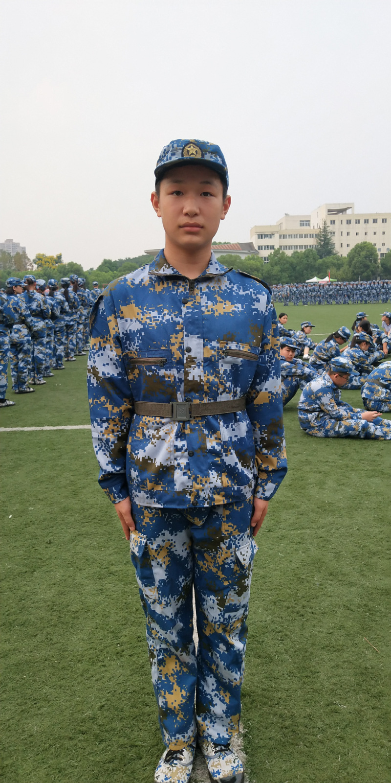 挺直腰背、目视前方,同学们不惧烈日在操场上站着挺拔的军姿。军训,既锻炼了身体又磨炼了意志,作为一名刚入大学校园的新同学,这是一个坚实的基础,一个良好的开端。