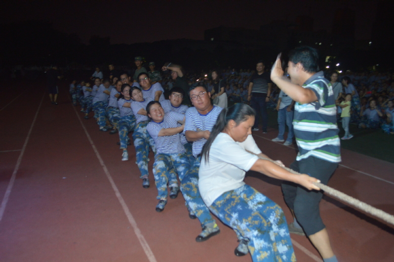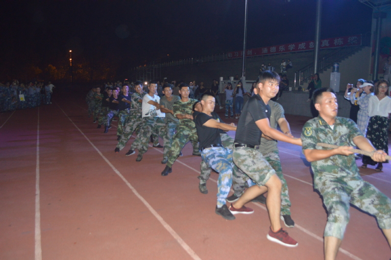 为丰富军训生活,增进同学、师生之间的友谊,帮助广大新同学更快融入和适应大学生活。9月18日,军训第四天,晚上的校运动场异常热闹,一场激动人心的拔河比赛正在激烈上演。教师教育系(基础部)的师生们积极参加活动,并取得了军训学员组亚军,师生队完败教官组,展现了良好的精神风貌。该系部副主任陈小凤、团总支书记黄忻然、学工办主任冯金燕和新生辅导员参加了活动,为参赛师生鼓劲加油。