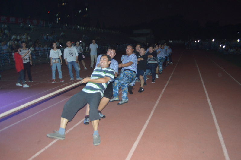 活动中,首先开战的是各系部的军训学员组比赛。各参赛选手自愿报名,积极参加。本环节第一轮,该系部迎战旅游与外语系。一声哨响,两队人员牟足了劲“拼力厮杀”,紧握长绳、互不相让,场下的欢呼声更是此起彼伏,双方队员用他们互不服输的劲将比赛带到第一个小高潮。在一阵又一阵的欢呼声中,该系部赢得了本晚比赛的首场胜利。几轮激战后,该系部对战软件工程系,两组队员互不示弱,手把绳索、极力拉扯,一度将比赛僵持了数分钟之久,最终软件工程系赢得本场冠军。学员组比赛告一段落后,最为人期待的师生组对战教官组拉开帷幕。在场下一阵高过一阵的欢呼声中,两组队员全力以赴,可谓势均力敌、不分伯仲,他们用不服输的气势把比赛推向了最高潮。