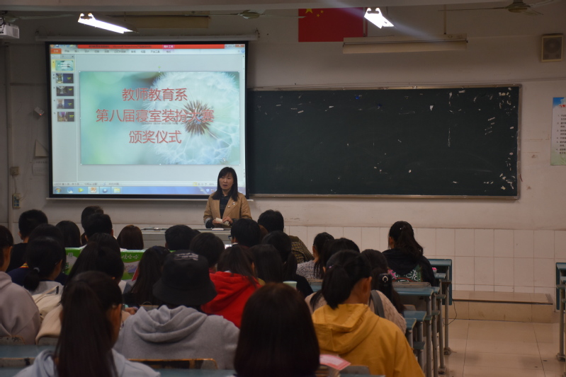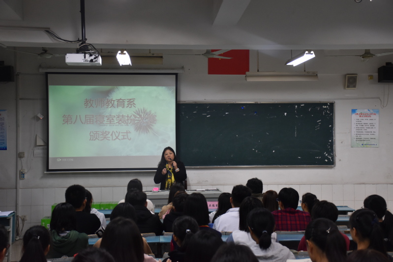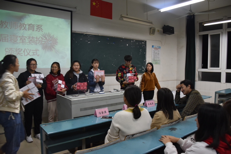 为贯彻落实高校大学生学风、校风建设,增强广大同学的自主自律意识,推进寝室文化建设,营造良好学习、生活环境,教师教育系(基础部)组织开展了为期一个多月的寝室装扮活动。11月1日,活动颁奖大会在A406成功举行。该系部党总支副书记吴德琴、副主任陈小凤、团总支书记黄忻然、学工办主任冯金燕出席活动。