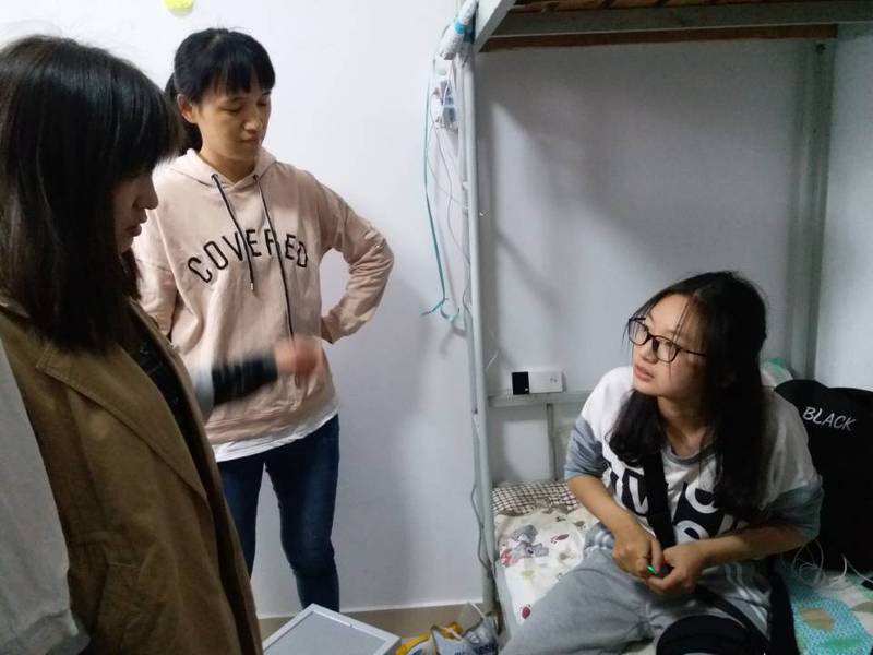 11月3日,教师教育系(基础部)副主任陈小凤、辅导员陈龙妹来到8栋宿舍楼看望校运动会期间受伤学生。