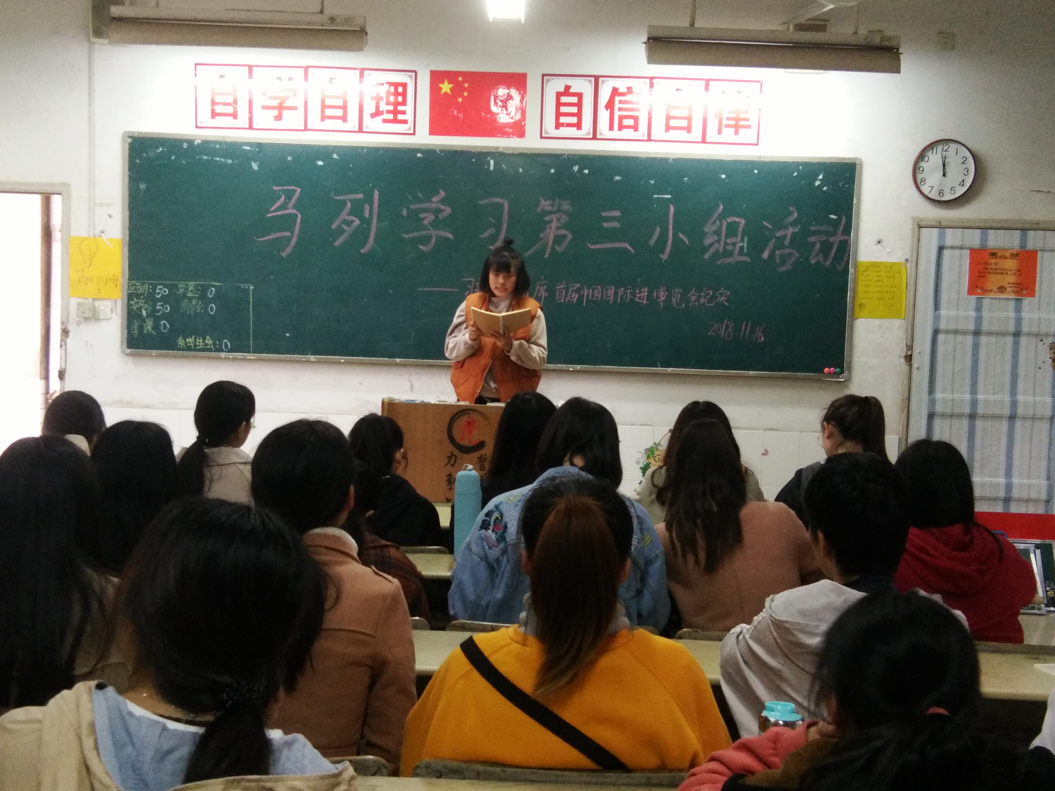 11月18日,教师教育系(基础部)马列学习小组第三小组在A101召开了第四次组内学习活动,本次学习的主要内容是“习近平出席首届中国国际进口博览会纪实”,活动由该组宣传委员李想楠主持。
