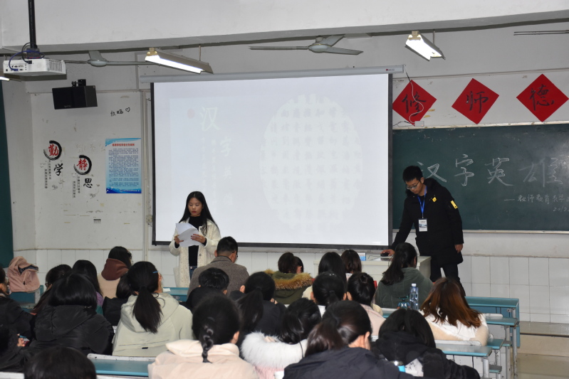为了弘扬中华传统文化,丰富校园生活,12月16日晚6:30,教师教育系(基础部)在修德楼106举办“横平竖直惟丹青妙笔,方方正正显中华本色”汉字英雄大赛。该系部学生会副主席徐畅,宣传部部长卢子琦,学习部部长杨启东等出席了此次大赛,并担任评委。