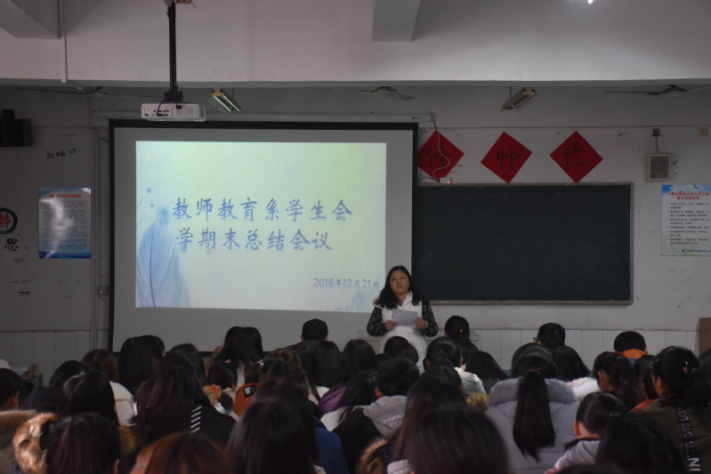 为推动系学生会工作更长久的发展,提高学生会干部工作的热情和质量,12月21日中午,教师教育系(基础部)学生会在修德楼A106举办了学期总结大会。莅临此次会议的有系党总支副书记吴德琴、团总支书记黄忻然、学工办主任冯金燕、团总支副书记李辛欣。校学生会全体成员参加了此次会议,会议由系学生会主席黄国慧主持。