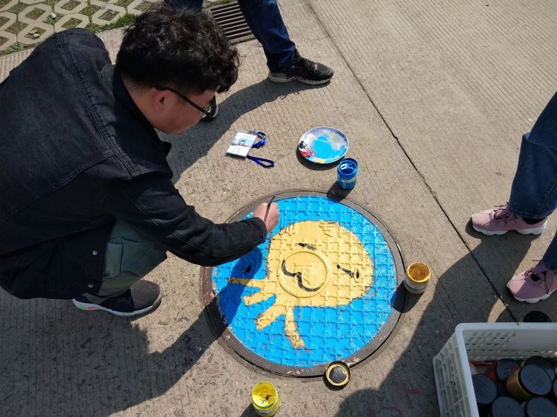 为进一步美化校园环境,丰富课余生活,让黑漆漆、冷冰冰的井盖生动有趣起来。3月14日,教师教育系(基础部)开展了“缤纷校园”井盖彩绘活动。