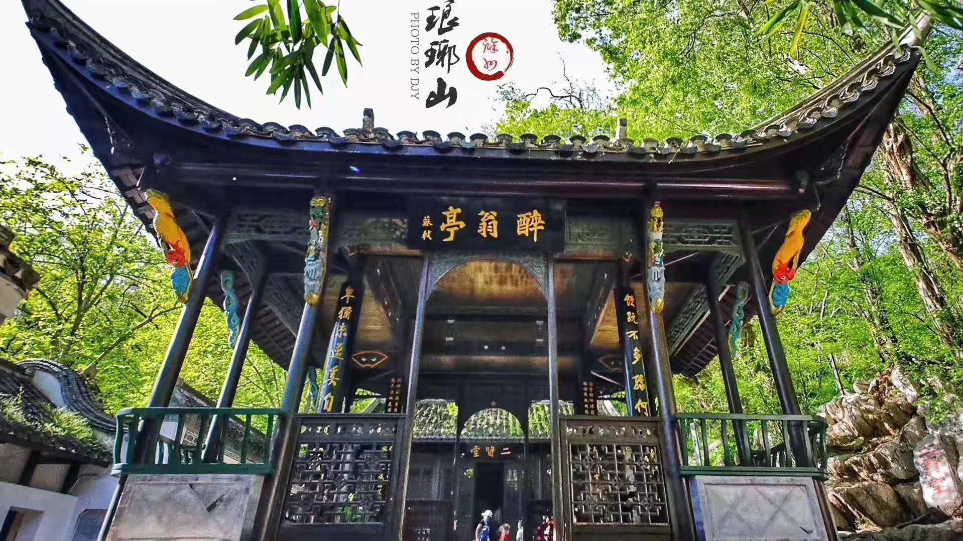 醉翁亭位于安徽省滁州市西南琅琊山山麓,是安徽省著名古迹之一,名列四大名亭之首。醉翁亭属歇山式建筑风格,飞檐翘角,十六根立柱分立四方,看上去非常美观。当年,欧翁被贬滁州,常在此与宾客饮酒赋诗,“觥筹交错,起坐而喧哗者,众宾欢也”。酒喝多了便自称醉翁,所以写出了流芳千古的《醉翁亭记》,恰恰是“醉能同其乐,醒能述以文”的真实写照。诗中“峰回路转,有亭翼然临于泉上者,醉翁亭也”记的就是此亭。“醉翁之意不在酒,在乎山水之间也。山水之乐,得之心而寓之酒也。”亲身在此地走一遭,也让同学们切身体会了当时欧阳修的闲适、恬淡和那种和谐平衡的感受。