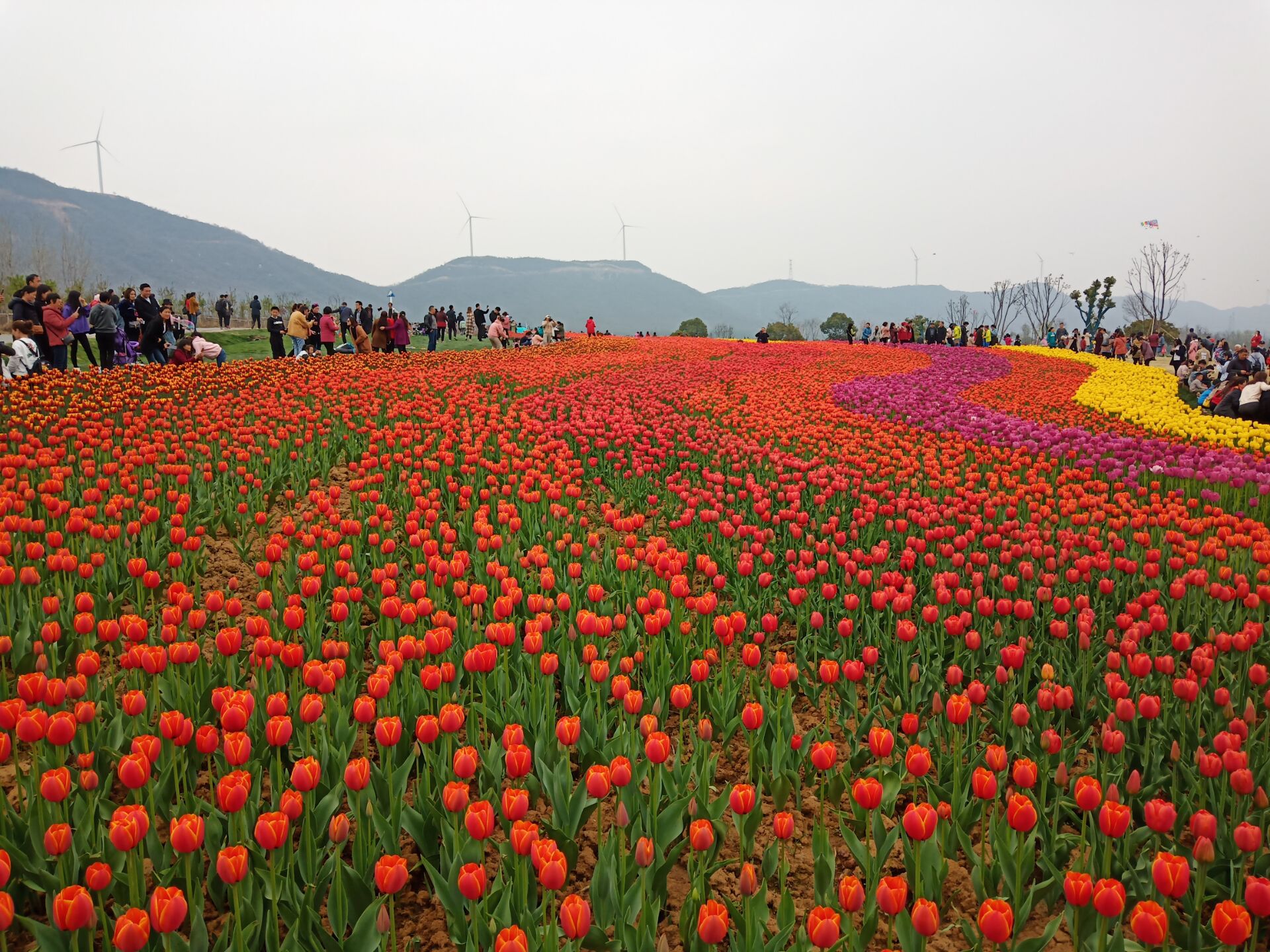 第二站是巢湖郁金香高地。顺着桃园小路走向高地,远远望去一大片一大片的五颜六色,据说这里有近200万株郁金香正在绽放,很是热闹。同学纷纷拿起手机拍照,有的跑来跑去;有的放风筝;有的吹泡泡;有的三五成群随处走走。走近自然、亲近自然,同学们暂时放下了繁忙的课业学习,使身心得到了很好地放松。