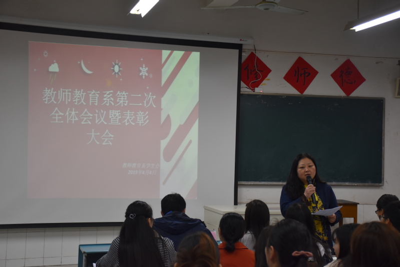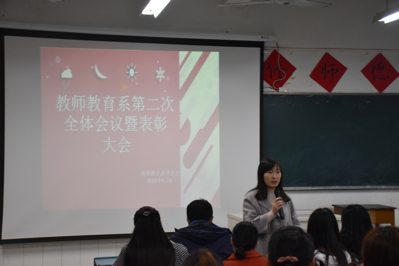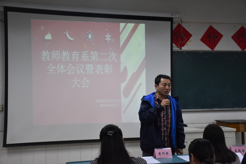 为进一步加强系学生会建设,增强学生干部组织办事能力,对努力工作的成员给予表彰与鼓励,4月4日中午,教师教育系(基础部)于A106组织召开了学生会第二次全体成员会议暨表彰大会。该系部党总支副书记吴德琴、副主任陈小凤、团总支书记黄忻然、团总支副书记李辛欣、辅导员冯金燕出席会议,会议由系学生会办公室张贝贝主持。