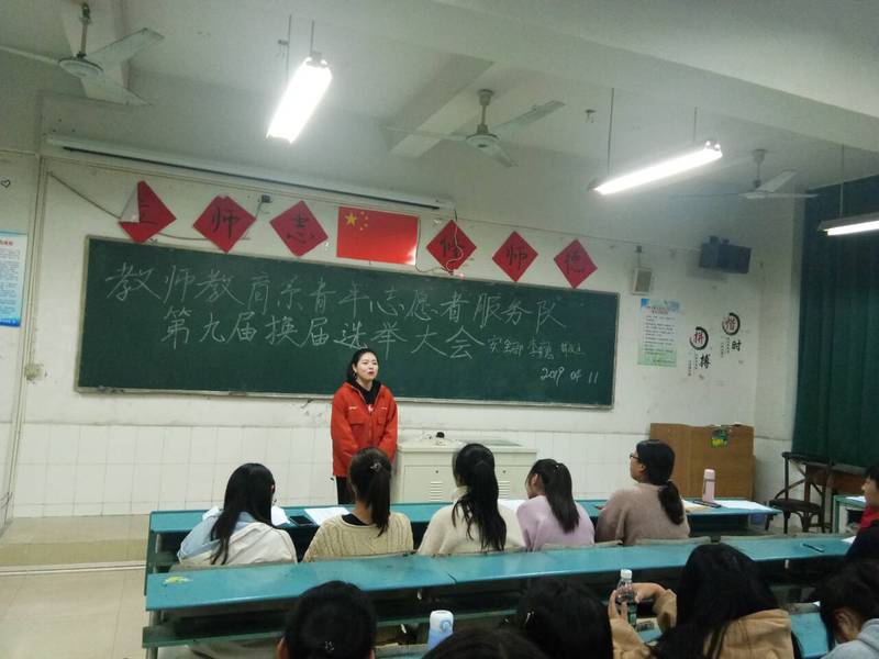 4月11日,教师教育系(基础部)于修德楼106开展了第九届青年志愿者服务队换届选举大会,该系部辅导员、指导老师冯金燕出席会议,全体第八届志愿者服务队成员参加会议。会议由副队长周燕主持。