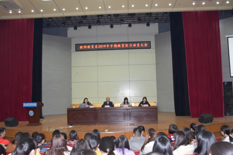 为确保本次中期实习工作的顺利开展,教师教育系(基础部)于4月12日下午3:30在校音乐厅组织开展了中期教育实习动员大会。该系部主任秦东方、党总支副书记吴德琴、副主任陈小凤出席会议,中期实习带队教师、各专业指导教师及2017级三年制和2015级五年制全体中期实习学生参加会议,会议由吴德琴主持。