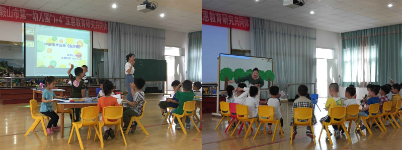 27日,首先由马鞍山市第一幼儿园的实习生查慧为我们带来的小班语言活动《猜猜我有多爱你》,查老师语言温柔,小朋友们都积极配合。第二个活动是由市政府幼儿园总园的实习生徐唱带来的是小班数学《5以内的数》,她用游戏贯穿整个活动,语言生动,有感染力,小朋友都很喜欢。接下来是雨山幼儿园的实习生陈晓慧带来的中班美术活动《泡泡画》,她根据幼儿喜欢的泡泡让幼儿创造出一幅幅美丽的泡泡画。她所在的雨山幼儿园副园长袁兴芳及指导教师唐雅琴亲临现场,表现出实习幼儿园对实习的高度重视。第四个活动是花和幼儿园的实习生周月带来的中班韵律活动 《鞋匠舞》,老师非常投入,幼儿也很喜欢这个韵律活动。最后,是来自安工大附属幼儿园的实习生胡九幸的大班语言活动《有那么一天》,她带领幼儿大胆畅想未来,幼儿也乐于表达自己的未来目标。