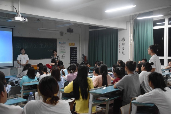 班会伊始,辅导员们先抛出了几个问题:现在大家是准备考编还是考研?如何去考编和考研?怎样着手备考……面对同学们一个个疑惑的眼神。陈婉婕以自身为例,和大家分享了如何从迷茫到跨专业考研成功,以及自己的学习和工作经验。她希望大家首先要明确目标;其次要有强大的自制力;三要培养自己的能力;四要提高临场应变能力。“多多复习,不断刷题,很少有事情是一帆风顺的,但胜利一定属于坚持到底的人。”陈婉婕感慨地说道。杨宋磊则结合PPT解说,向大家详细介绍了教师编制、公务员、“三支一扶”和大学生村官考试相关信息,并对现场同学的提问,给予了积极有效的解答,让同学们更好地了解了相关就业途径和备考方向。