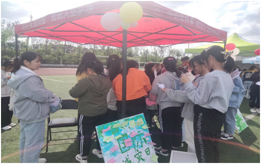 上午9点,社团成员开始在操场布置场地,有条不紊地搬运相关宣传物品,力争在紧凑的时间中整理好一切相关事务。在活动现场,社团准备了两款展板来介绍社团基本情况和主要活动。