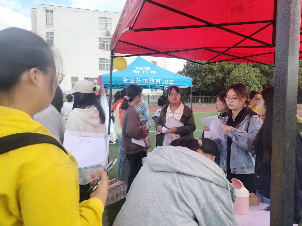 下午1点半百团大绽正式开始,社团成员纷纷打起精神开始招新,活动伊始便有许多大一新生陆陆续续来到摆台边解情况,大家围绕社团组织、社团活动内容等方面展开了咨询,希望可以找到自己心仪的社团加入。