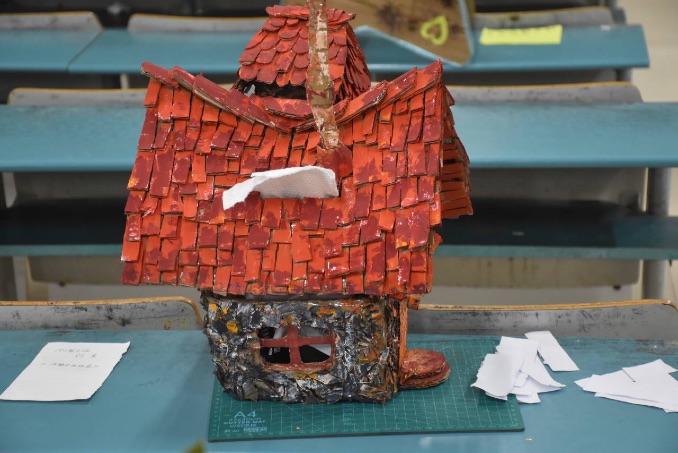 据悉,本次活动分为场外和场内两个环节。选手报名后,可在场外完成个人作品的设计与制作,场内环节主要是产品的展示、解说与评比。下午5:40,评选活动如期开始。教室内,各班级参赛作品各式各样、创意丰富。有废旧宣传单做成的一物两用的相框笔筒;有废旧纸箱做成的航空母舰“保钓号”;有废纸盒做成的机器人“波比”……构思巧妙,让人应接不暇,充分体现了变废为宝,保护资源的活动主题。