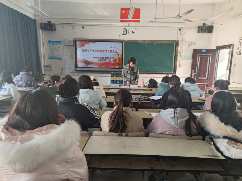 12月17日中午12:40,教师教育系(基础部)党总支第二党支部为响应党的号召,培养优秀党员,在A402组织召开2021年下半年预备党员发展大会。会议由袁媛同志主持,该支部全体党员及发展对象参加了此次会议。