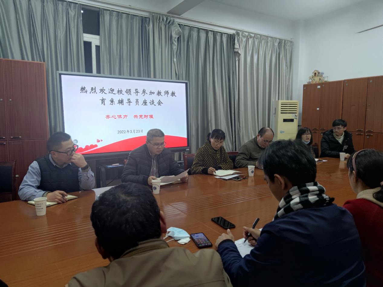 疫情发生以来,为严格落实上级防控工作要求,学校党委及各系部统筹疫情防控,严防严控,广大教师坚守岗位,履职尽责,勤勉工作,有力保障了在校学生生命健康和校园安全稳定。3月23日晚上7:00,马鞍山师范高等专科学校党委副书记、校长刘淑凤,校党委委员、副校长周志亮一行深入教师教育系看望辅导员并参加座谈活动。教师教育系主任栗亮、党总支书记王结贵、副主任陈小凤及所有辅导员参加此次活动。