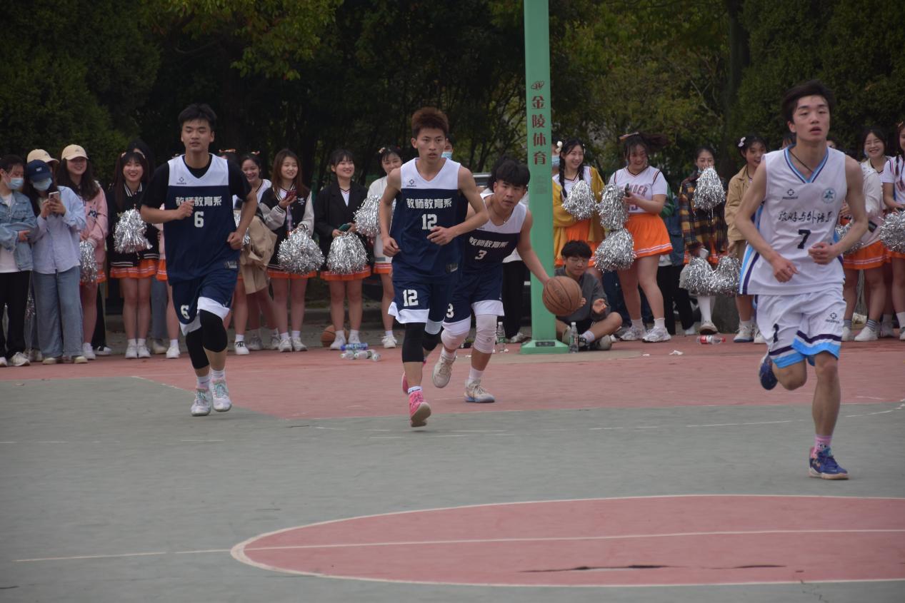 首场组内赛,该系部对阵旅游与外语系代表队。下午3:30,比赛正式开始。首先由旅游与外语系队员发球,他们全神贯注,准备出其不意将球传给队友。只见教师教育系11号队员猛地跳起,拦住对方传出的球,用力一掷,球在上空划过一条弧线……场上的队员和场下的观众全神贯注地盯着球的运动轨迹,生怕漏过精彩瞬间。“砰”的一声,球平稳地落进了篮筐里。“球进了!”场上一片欢呼。该系部代表队士气大盛,乘胜追击,一举拿下首场胜利。在接下来的几场比赛中,队员们个个顽强拼搏,全力以赴,赛出了水平,赛出了风格。最终该系部以67:52的优异成绩获得了本场篮球联赛预赛的胜利。