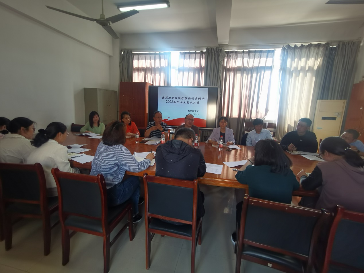 为进一步推进落实2022届毕业生就业工作,学校党委副书记、校长刘淑凤一行于5月5日下午来到教师教育系(基础部)开展调研。校党委委员、副校长周志亮,校党委委员、副校长李胜等随行调研。校党委委员、系主任栗亮,党总支书记王结贵,学生处处长汪志彬,学生处副处长晋愈飞,系副主任王红艳、陈小凤等参加调研。