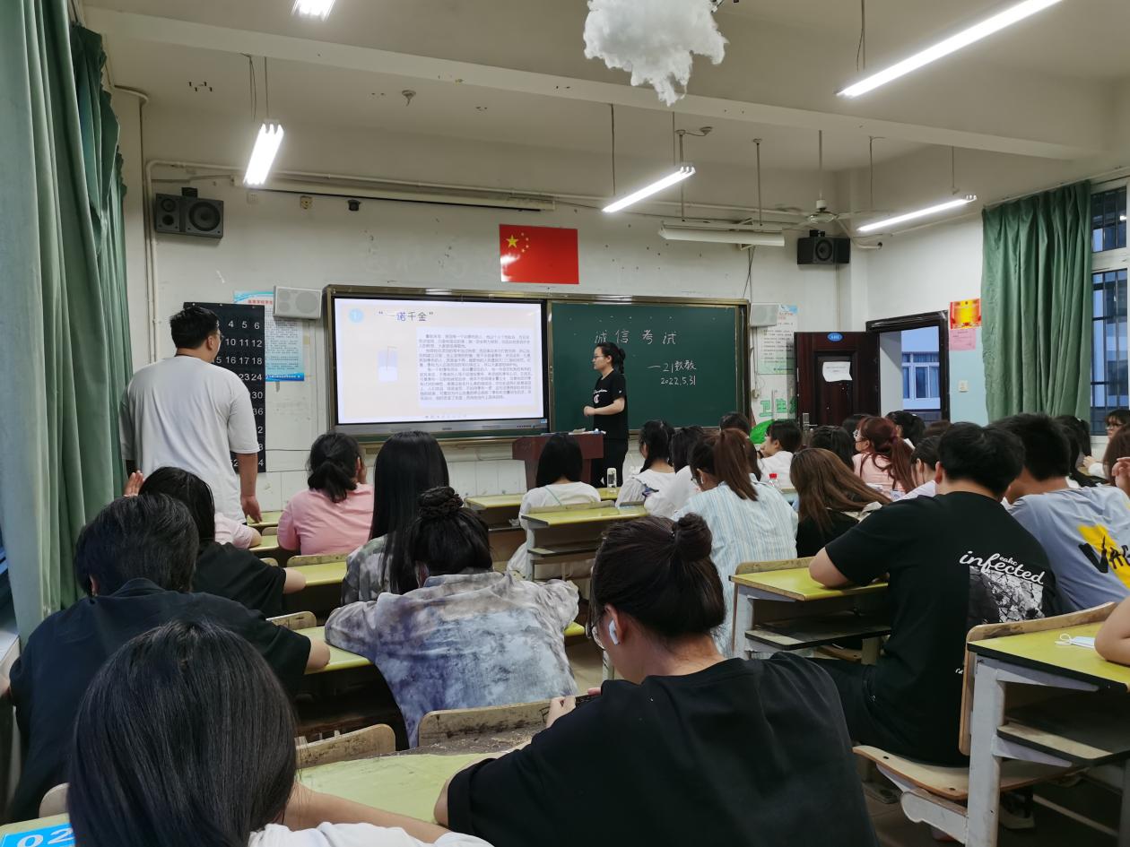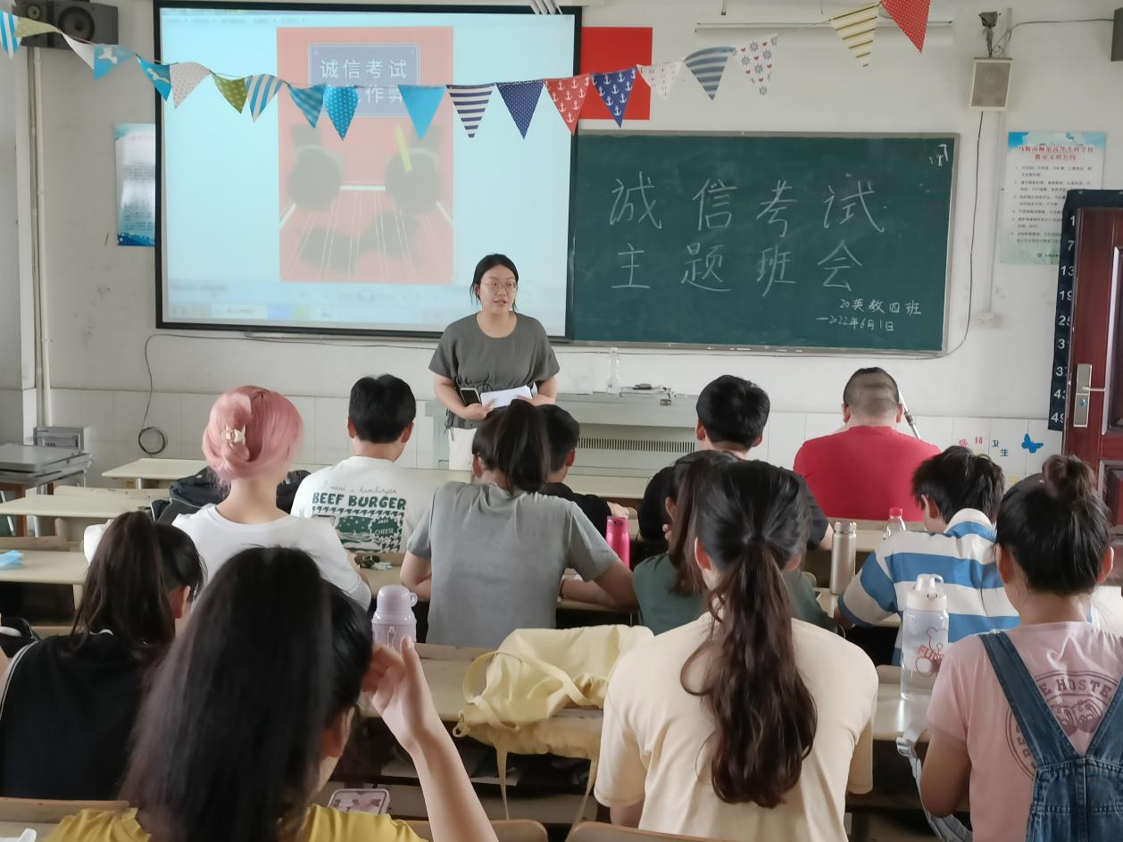 为进一步加强学风建设,严肃考风考纪,营造良好的学习氛围和公平竞争环境,提高学生诚信意识,避免考试违纪现象发生,近日,教师教育系(基础部)组织各班级开展了诚信应考主题教育活动。