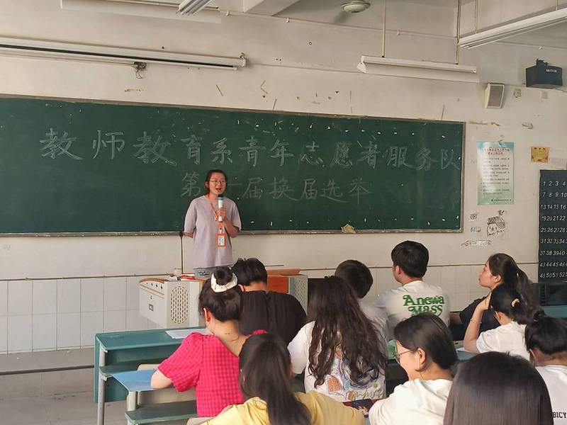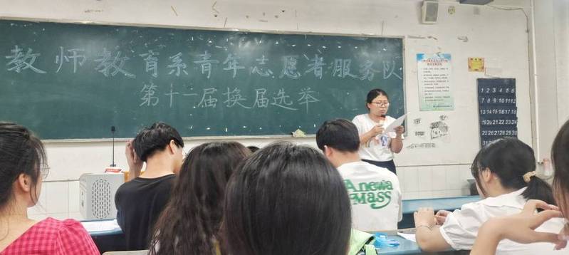 6月7日,教师教育系(基础部)青年志愿者服务队换届会议在修德楼306举行,系团总支书记冯金燕及第十一届青年志愿者服务队全体人员出席会议,会议由志愿者服务队文艺部潘岳主持。
