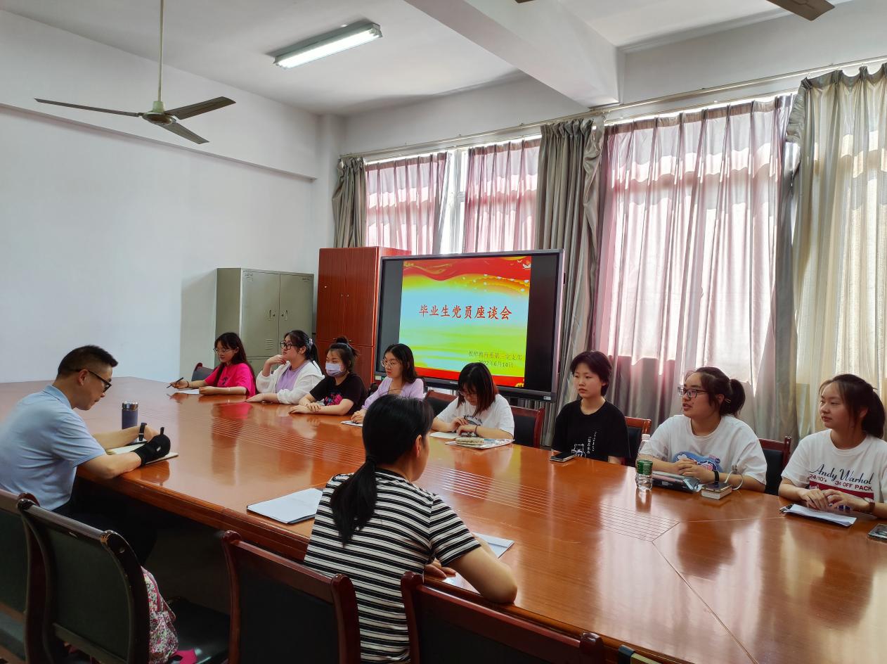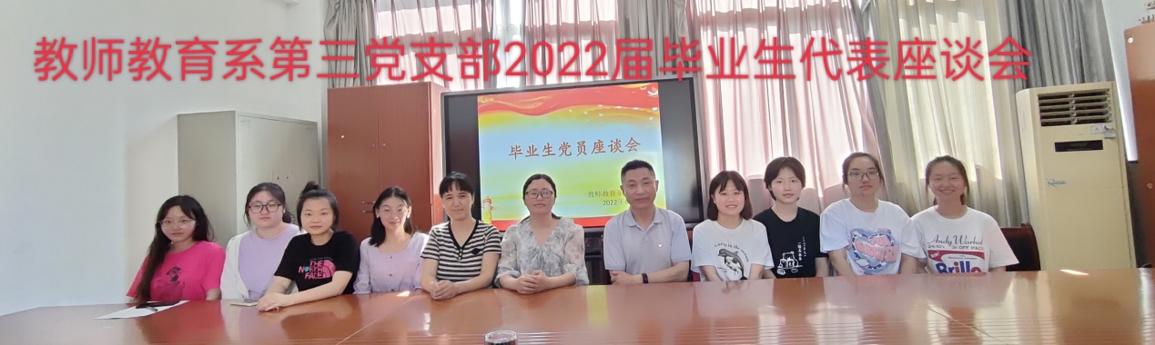 在毕业生即将离校之际,为了解支部毕业生的就业动态、对学校人才培养工作的评价以及对学校发展的意见与建议,6月14日,教师教育系第三党支部在C503会议室召开了2022届毕业生党员、入党积极分子交流会。教师教育系党总支书记王结贵,第三党支部书记戴明丽和宣传委员陈龙妹,毕业班党员和入党积极分子代表一同参加。