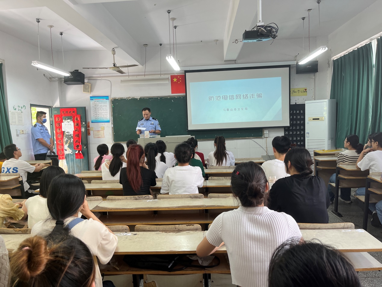为有效提高学生的反诈骗意识,教师教育系(基础部)于9月5日-6日在各班级开展“反诈骗宣传活动”,马鞍山市公安局反诈分中心陈警官一行参加了此次宣传活动。