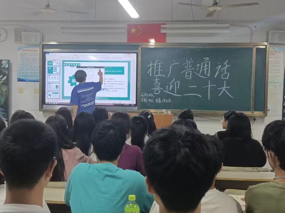 为全面贯彻国家语言文字方针政策和法律法规,大力推广和规范使用国家通用语言文字,在第25届全国推广普通话宣传周之际,9月16日,教师教育系(基础部)组织开展了“推广普通话,喜迎二十大”主题班会活动。