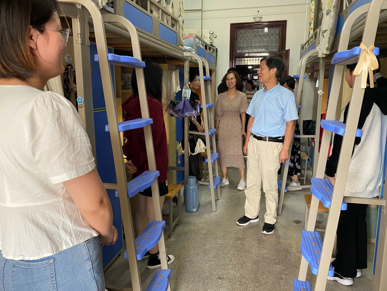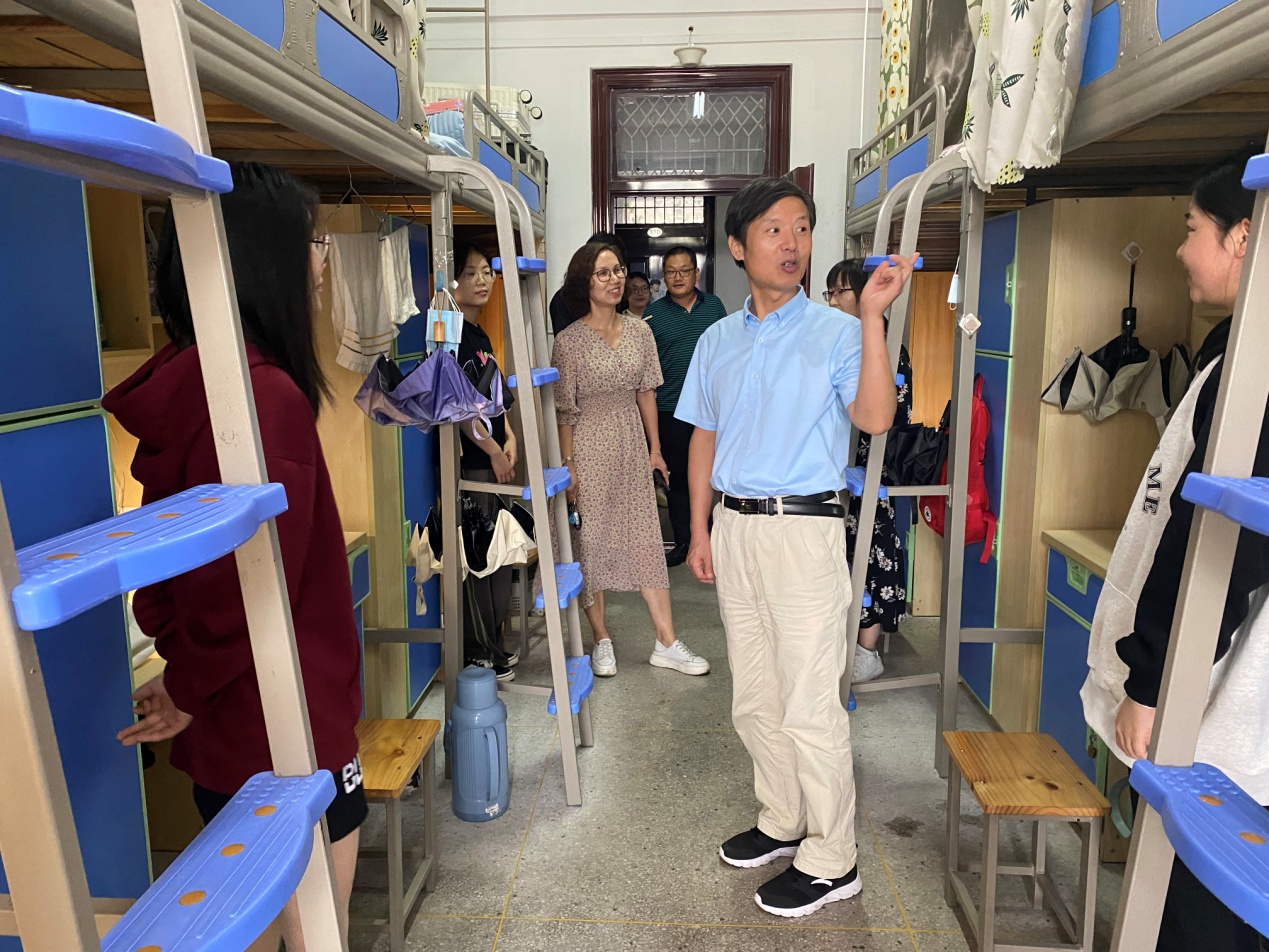 为进一步加强学生宿舍管理与服务,深入了解学生在校生活、学习情况,9月20日,校党委委员、副校长李胜走进教师教育系(基础部),陪辅导员走访寝室,开展实地走访调研。该系部党总支副书记谷燕、副主任陈小凤和部分辅导员参加了走访活动。
