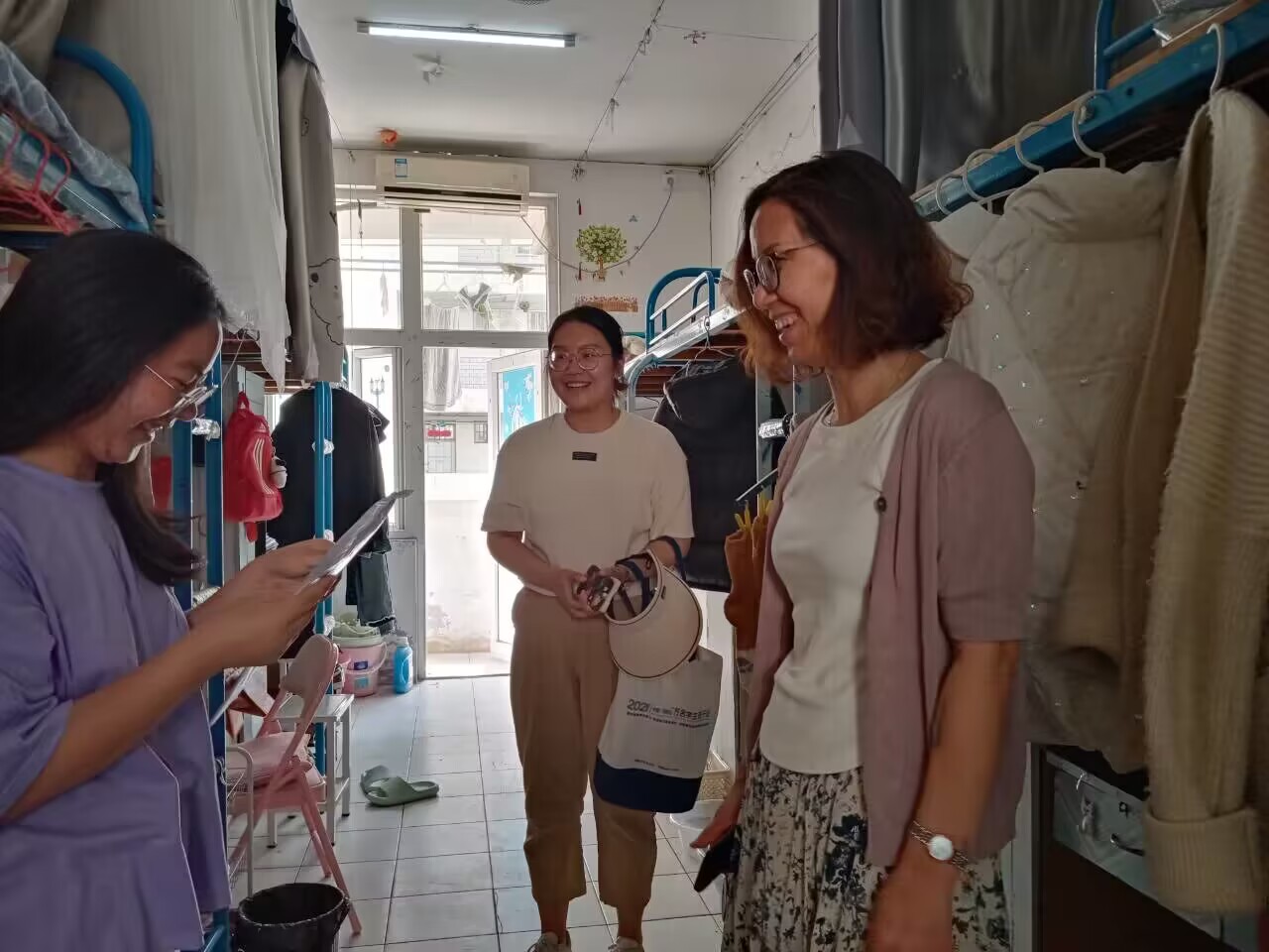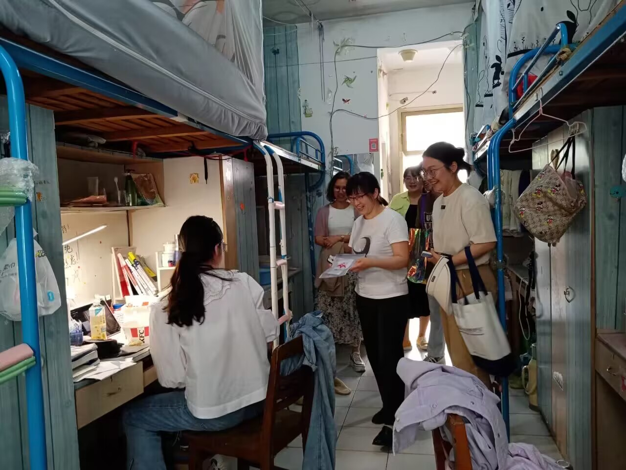 活动中,谷燕一行走进学生宿舍,看望慰问专升本备考学生,与他们面对面交流,为他们送上暖心文具礼包,表达老师们对他们的美好祝愿。文具袋中包含了中性笔、2B铅笔、橡皮等考试所需基础文具,并附有“送给临考的你”一封书信,将对同学们的祝福和鼓励诉诸笔端,用“过来人”的身份和大家说一句“辛苦了”。走访中,谷燕还细心询问了同学们的近况,提醒他们注意劳逸结合,不要太过焦虑,放平心态,积极备考。