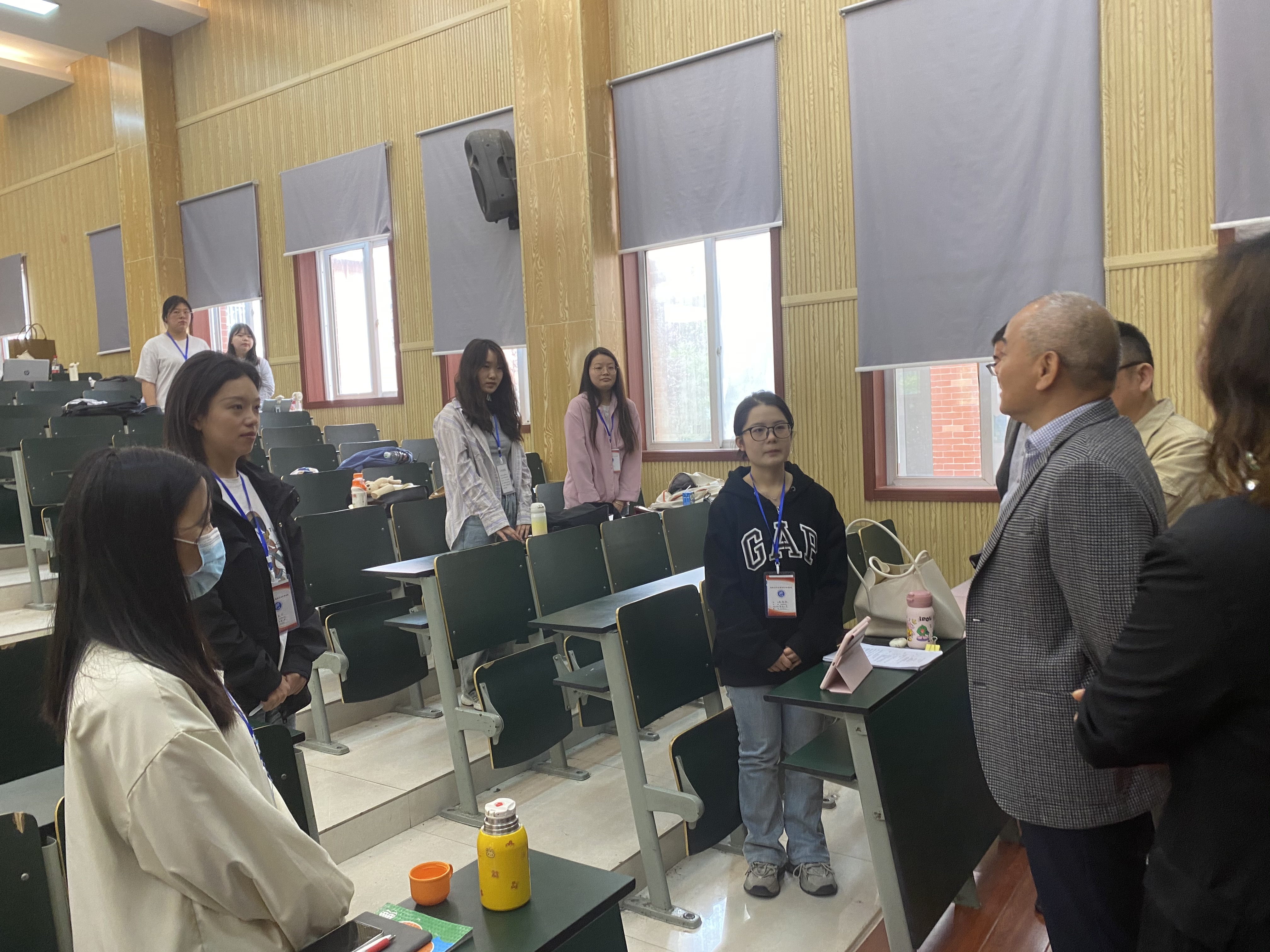 之后,张勇军一行来到东方城小学。在实习生的备课教室,实习生们依次自我介绍,谈了实习以来的感受,并对东方城小学的指导老师以及我校指导教师的悉心指导表达了感谢。