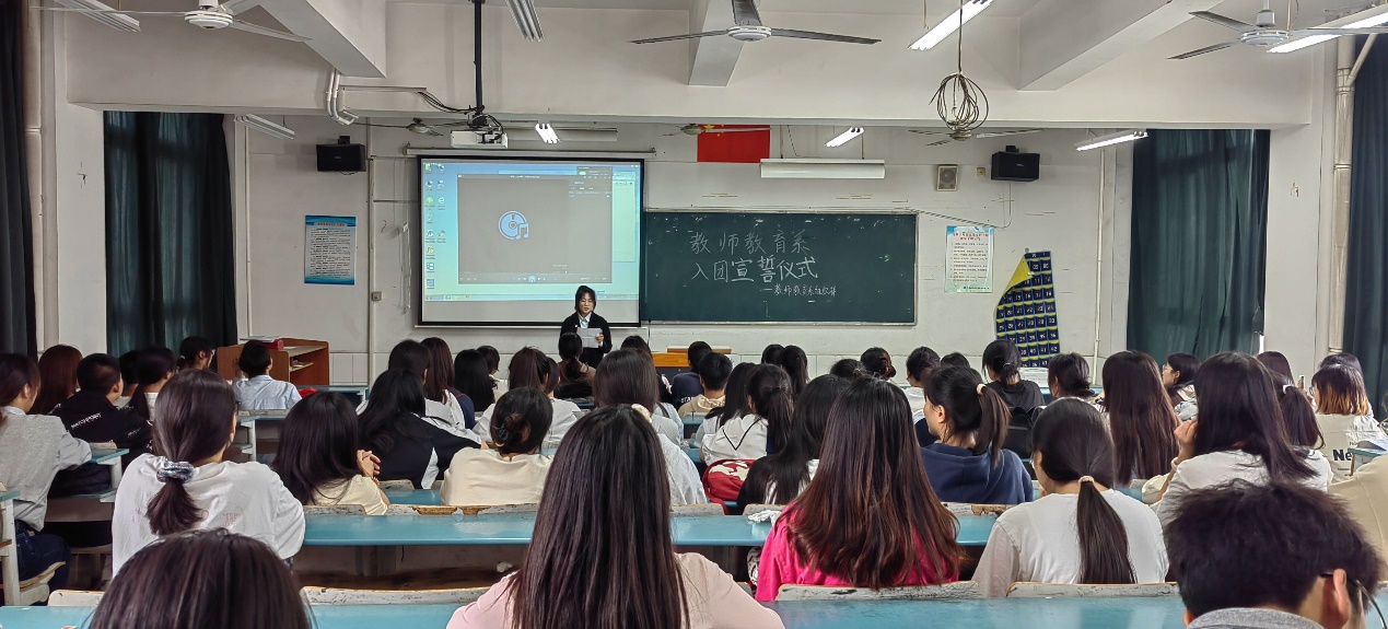 最后,陈婉婕代表教师教育系党总支进行发言。她向本次新发展的122名团员表示祝贺,向新团员们强调团员是一种象征,更是一份责任,是党的助手和后备军,希望新团员们继续发扬奉献精神,把个人的追求和国家民族的命运紧密地联系在一起,从而提升自己的人生价值,听党话,跟党走,不负韶华,不负时代。(图文/系学生会办公室黄露 盛书凡 编辑/陈婉婕 审核/谷燕)