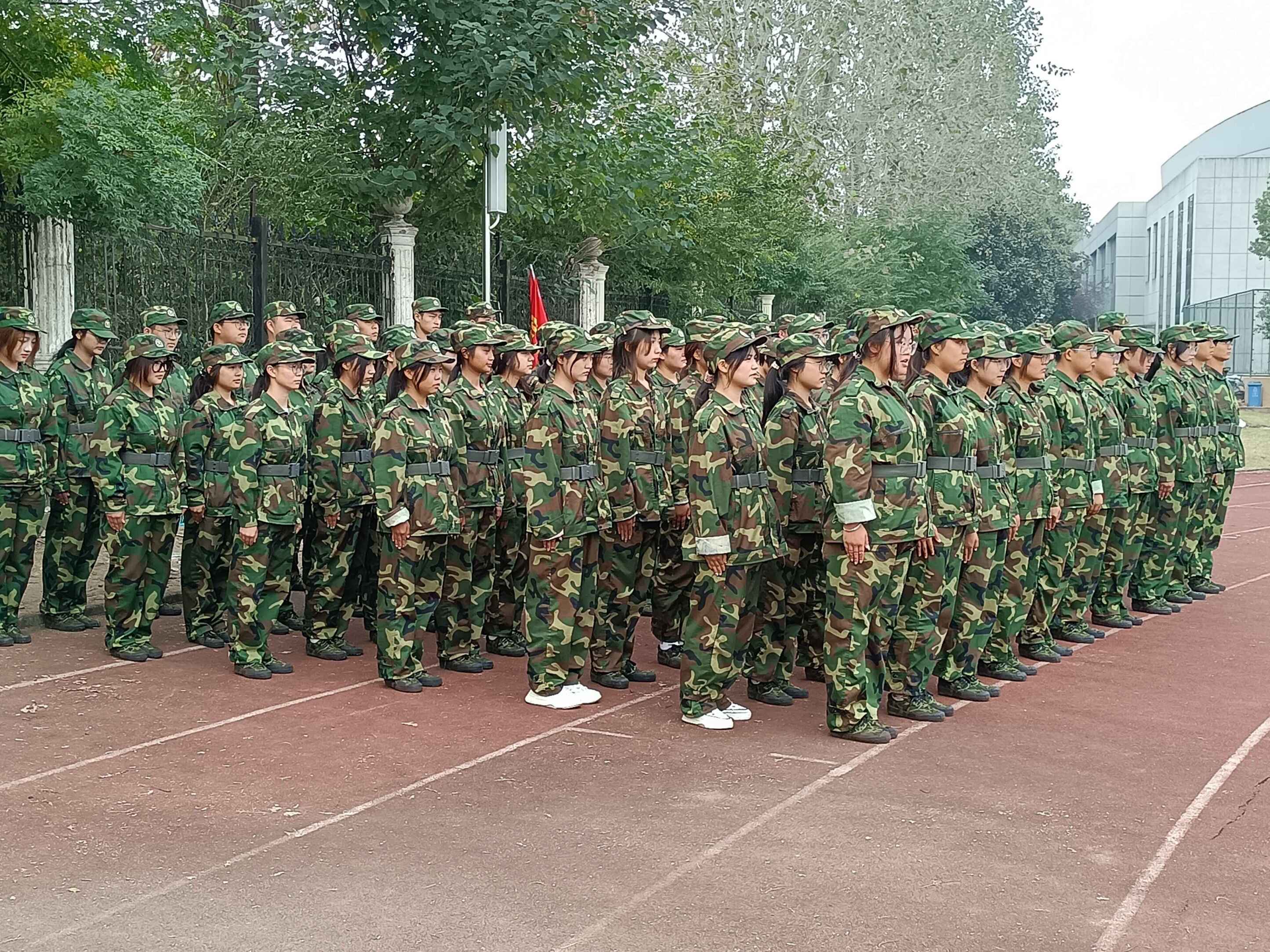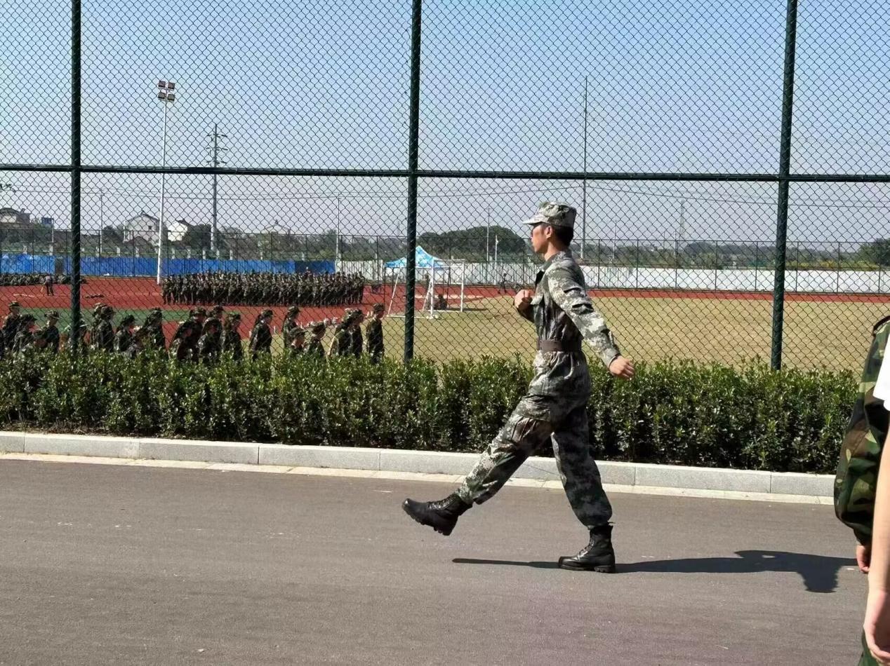 “稍息,立正……”绿茵场上,身着迷彩军训服的新同学个个昂首挺胸、神采奕奕,在教官们的指挥下,跟随口令做着立定、稍息、齐步走的动作。“双脚分开约60°,脚跟并拢,双手紧贴裤缝,前后贴紧不留缝隙,两肩后张收腹,下颌微收,抬头挺胸,目视前方。”站军姿是军训的必修课程,虽然辛苦,同学们却用汗水和坚持为这个秋天编织出了别样美丽的画卷。