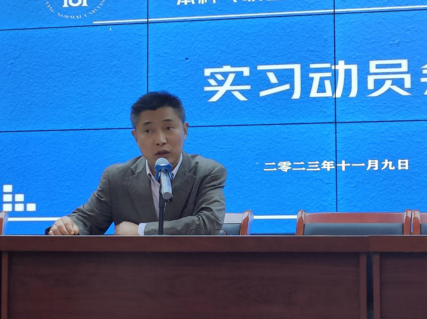 2023年11月9日,教师教育系在红色影院召开2022级英语本科(联合培养)实习动员大会,会议由教师教育系党总支书记、副主任王结贵主持。英语专业教师和全体实习学生参加了会议。
