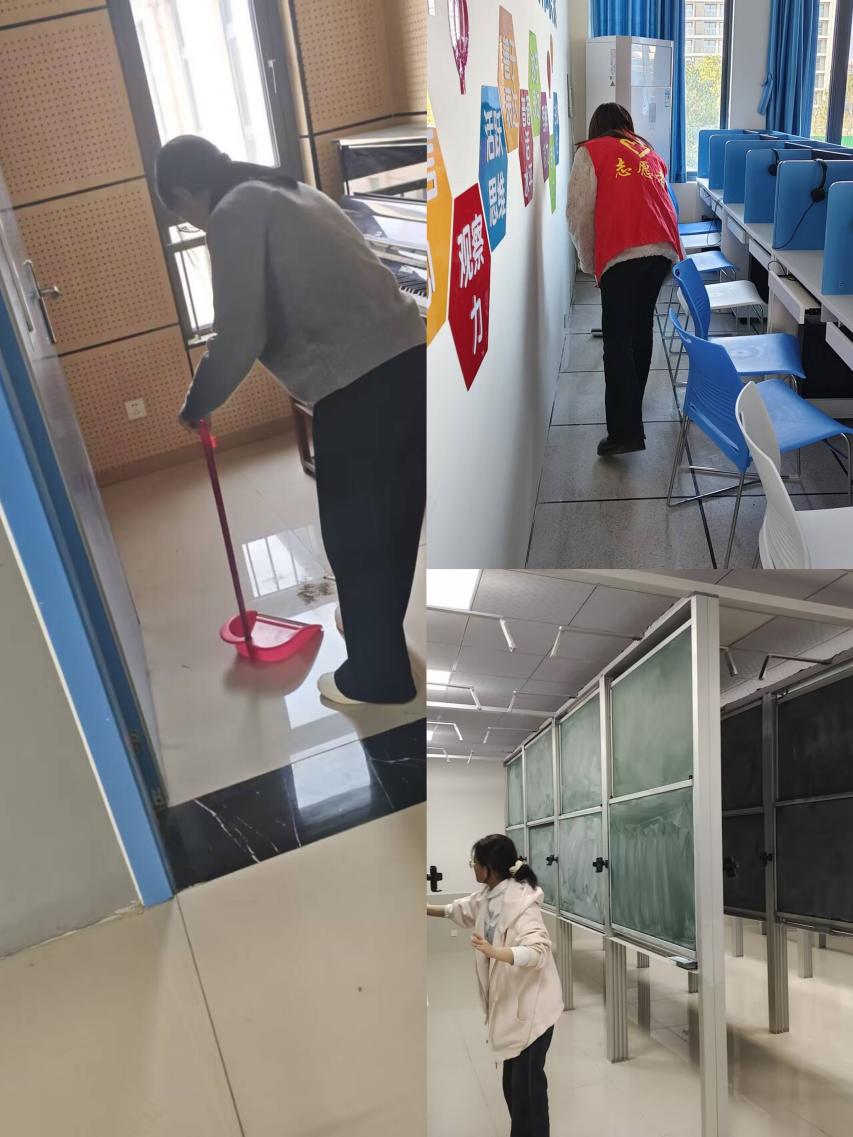 本次活动主要在学院教学场所内进行,重点对实训室、琴房等区域进行常态化清洁维护。志愿者们准时集结,几人一组分工协作,分别负责实训室设备擦拭、教具整理、琴房清洁等不同任务,各环节衔接有序。
